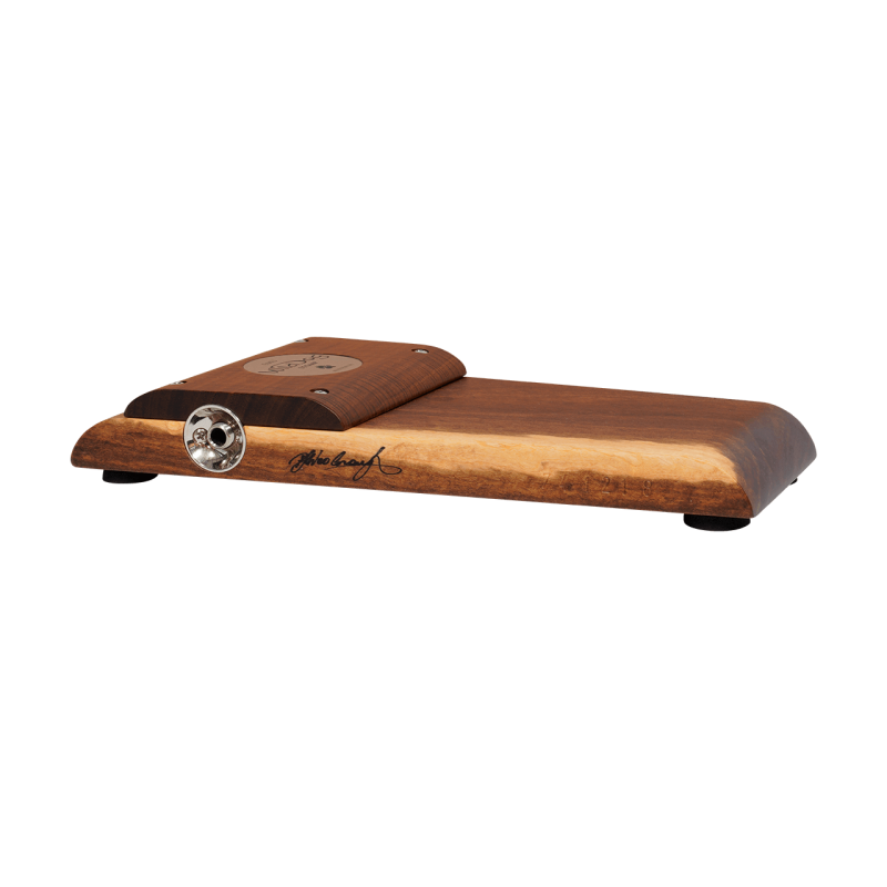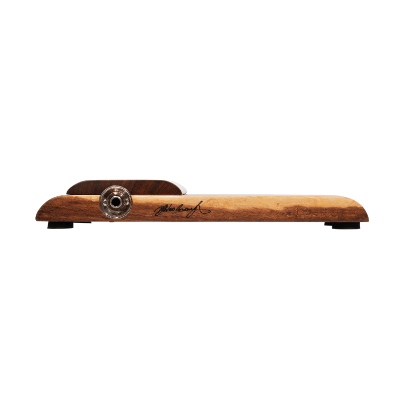 All solid timbers give this stomp box a distinctive look and serious bottom end thump. It also features a fatigue reducing rolled heel which allows the foot to pivot rather than lift, thus significantly reducing the tapping effort. The raised tone bar provides an instant sweet spot for a deep warm tone.